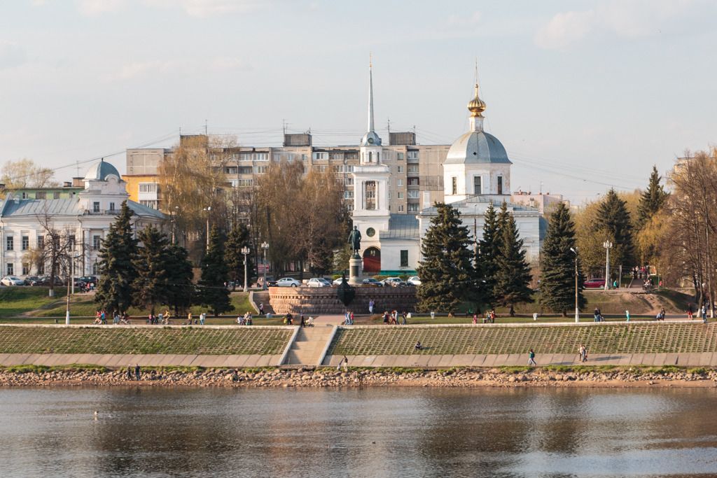 Первым российским городом, в котором я побывал в "новой" жизни, стала Тверь. До этого я несколько раз был здесь проездом, не имея возможности посмотреть что-либо, кроме привокзального района. Честно говоря, и в этот раз времени на осмотр города у меня не было, но хотя бы удалось ненадолго вырваться на набережную и посмотреть на Волгу: до этого момента с Волгой мы лично знакомы не были. Дорога из Петербурга была нелегкой, а день уже сменялся вечером, о чем постоянно напоминала моя уставшая тушка. Однако, очередное пренебрежение открыточными видами Твери грозило уже перерости в открытое оскорбление города, а это совершенно не входило в мои планы. Поэтому мы вновь сели в машину и рванули на парадную набережную, носящую имя князя Михаила Ярославовича, успевшим в начале XIV в. от души повоевать и с москвичами, и с новгородцами.