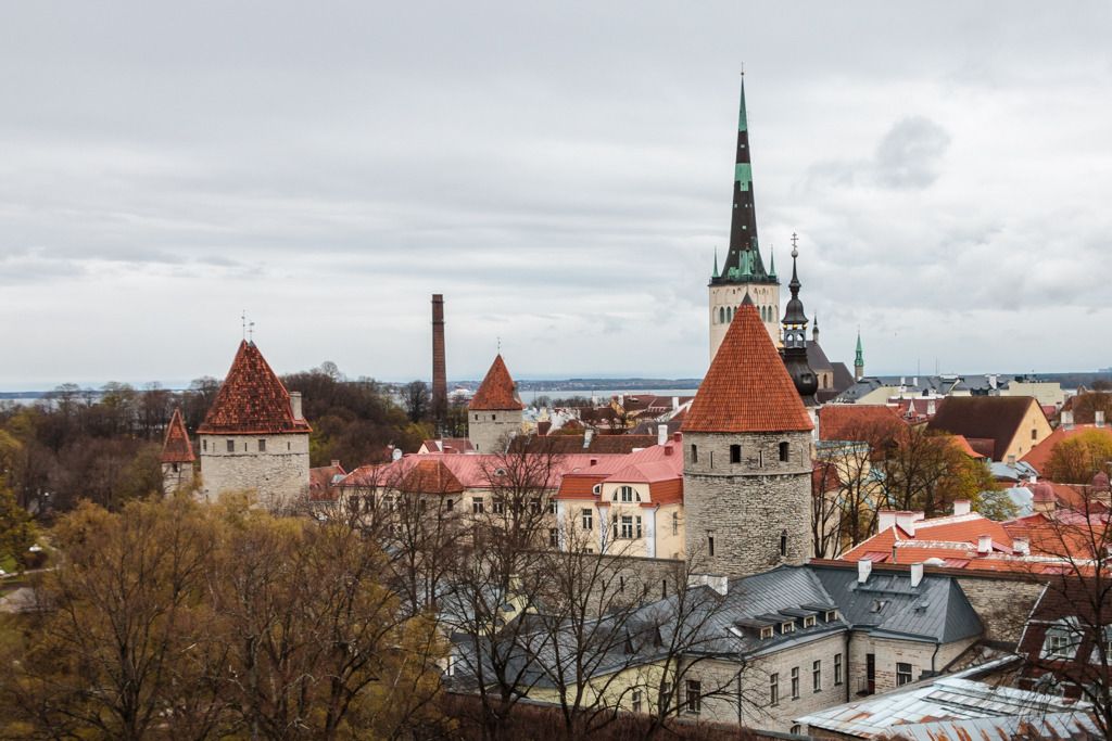 Вид на крепостные башни Таллина с одной из смотровых площадок на холме Тоомпеа - визитная карточка города.